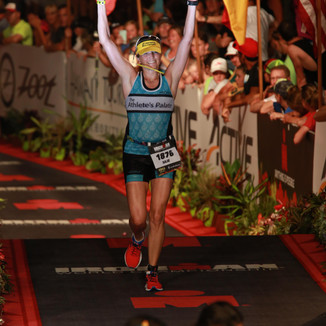 As I hit the 21km I started to feel better and was finally running stronger. I entered the energy lab at sunset. The Energy Lab entrance was lively there was lots of music and the road is a slight downhill that leads to the water. The view was beautiful, it was a perfect colourful sunset with palm tree silhouettes in the distance. Running through a lava field towards the water into the sunset was one of the most breath taking views I have ever encountered running. My run needs bag was in the Energy Lab. Unfortunately, the volunteers didn't know what to do so I had to find my bag myself. I decided to carry the nutrition I had packed, just in case. The run course head back up the Energy Lab and back onto the Queen K. The music was loud & upbeat and gave me an energy boost! I grabbed my water from Pete Reid, a former Canadian professional triathlete who has won ten Ironman triathlons including Kona three times, and instantly gained even more energy to run to the finish.